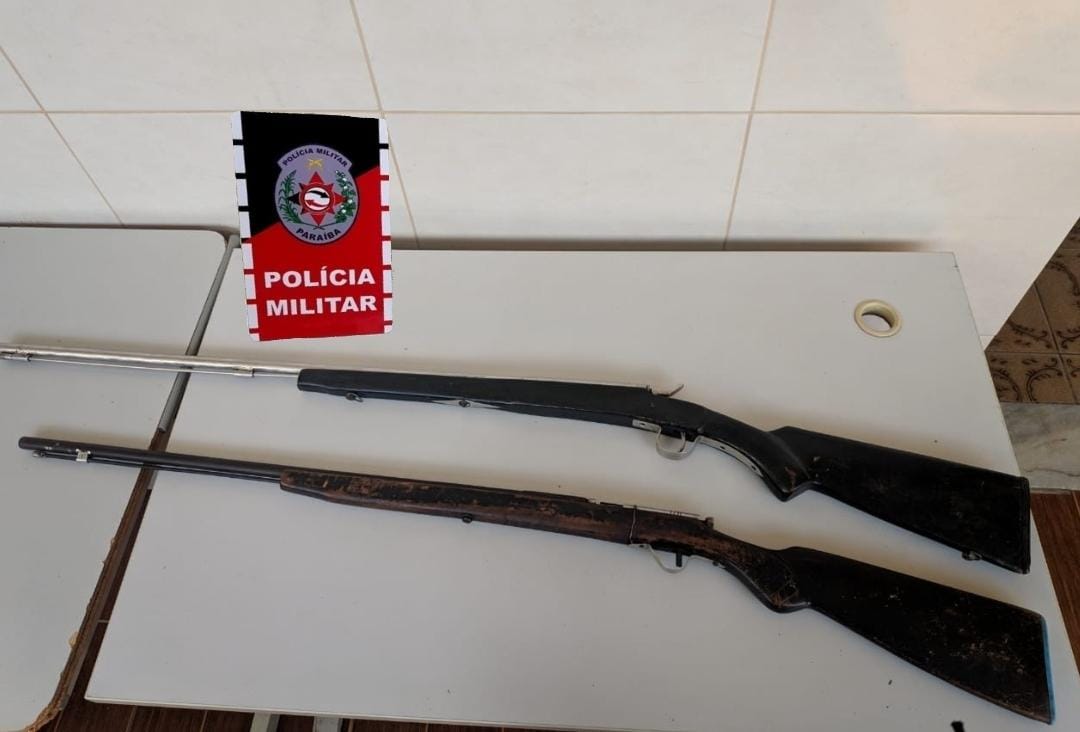 A Polícia Militar prendeu um suspeito com duas armas de fogo, na tarde desta terça-feira (29), durante incursões realizadas no Sitio Jacaré, que fica na cidade de Remígio, no Agreste da Paraíba. O homem, de 24 anos, estava transportando as armas espingardas na lateral de uma moto.