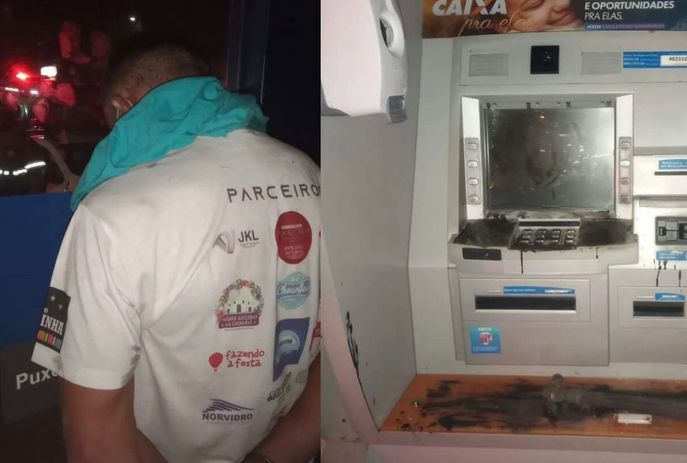 Equipes do 5º Batalhão, que participavam da operação Alvorada, receberam informações de que estava saindo fumaça de dentro da agência e cercaram o local. O acusado tinha colocado fogo nos caixas eletrônicos e estava tentando danificá-los com ferramentas. Após a prisão dele, os policiais encontraram barricadas na rua que fica por trás da agência. O suspeito confessou que tinham sido montadas por ele.