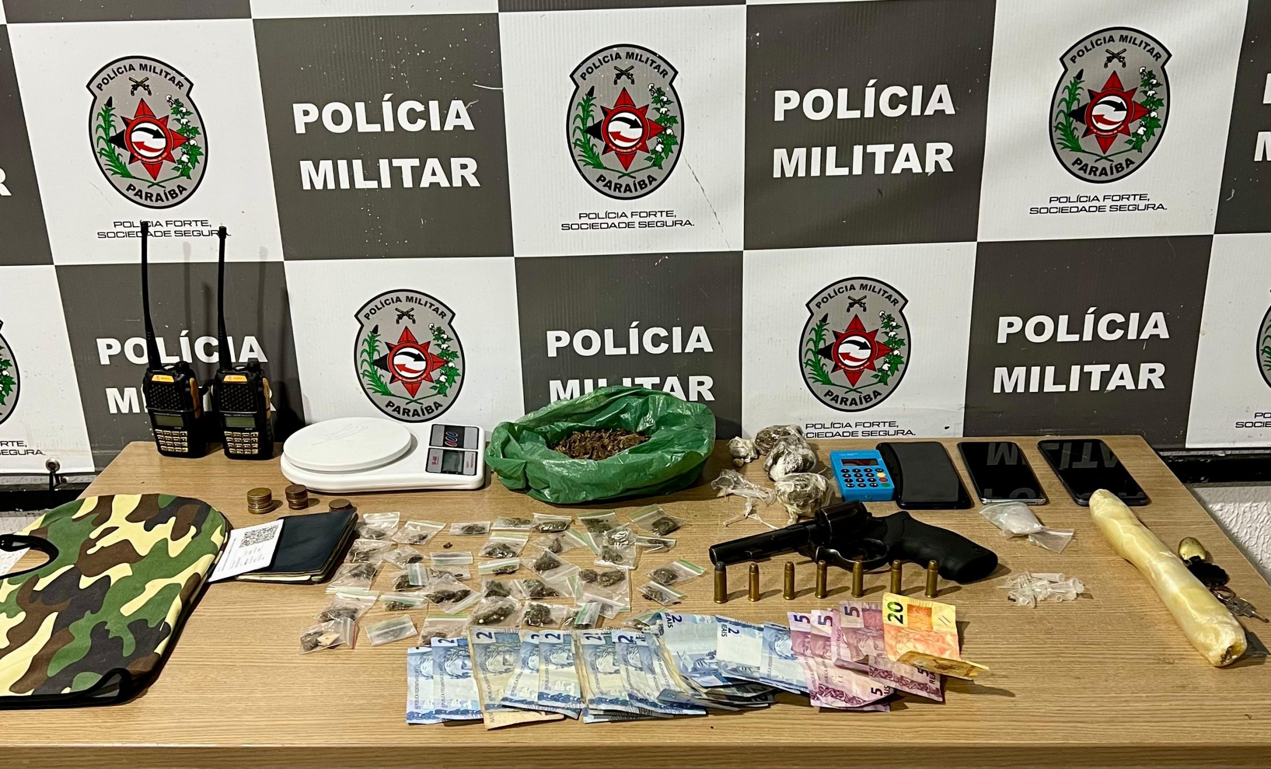 De acordo com o Regimento, o criminoso estava com quase 50 porções de substância similar a maconha e crack, um revólver calibre 38, radiocomunicadores, maquineta de cartão, celulares, balança, capuz (balaclava) e dinheiro. Toda a ocorrência foi apresentada na delegacia para à devida autuação.