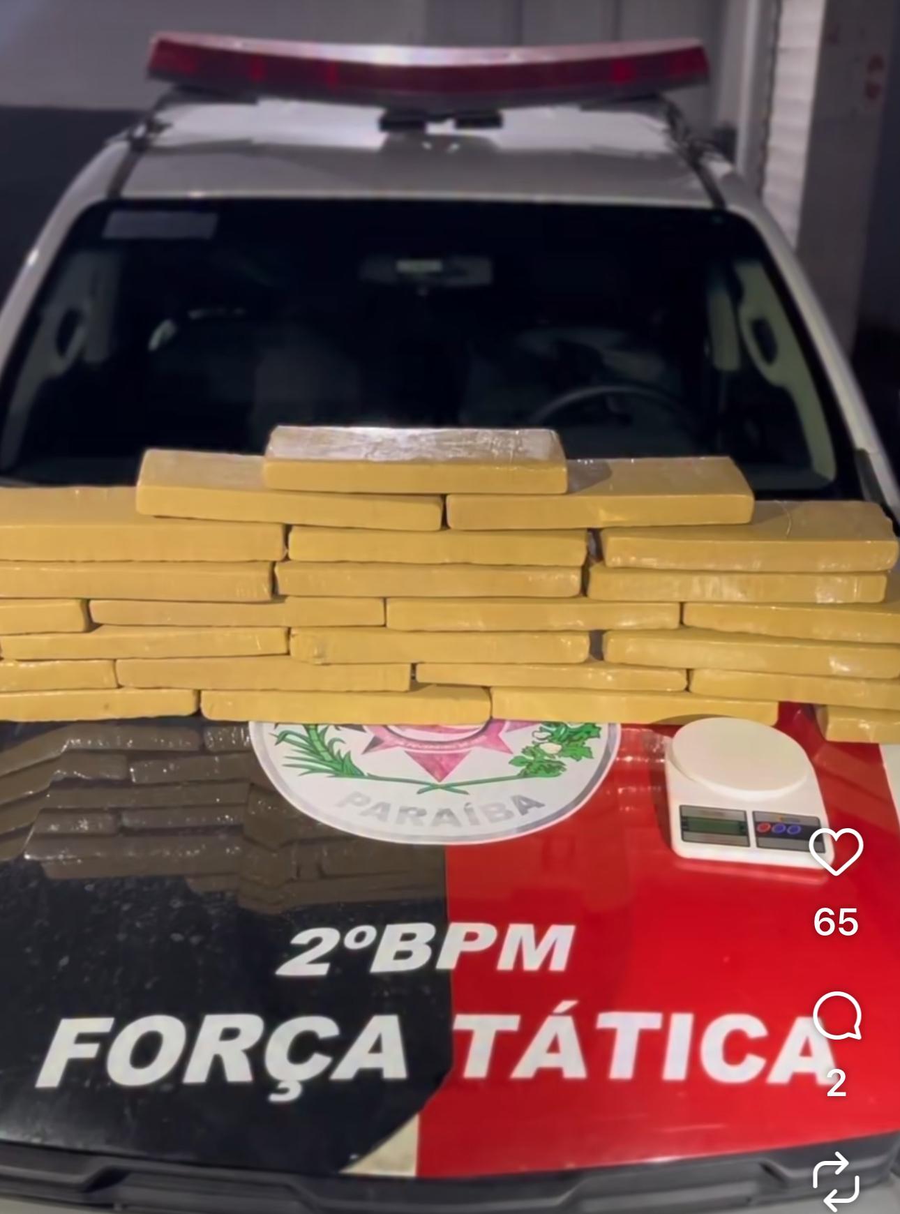 A Polícia Militar apreendeu 26kg de maconha, no fim da tarde deste domingo (5), em uma ação preventiva da Força Tática do 2º Batalhão, no bairro Três Irmãs, em Campina Grande. A droga seria distribuída no município.