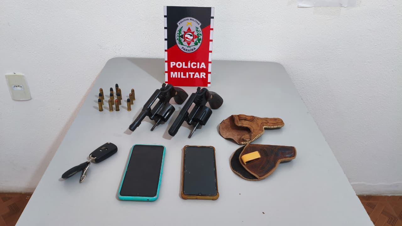 Policiais militares da 2ª Companhia do 3º Batalhão apreenderam dois revólveres após interceptar um carro com dois ocupantes, na madrugada desta segunda-feira (6), perto do parque de vaquejada da cidade de Condado, no sertão da Paraíba.