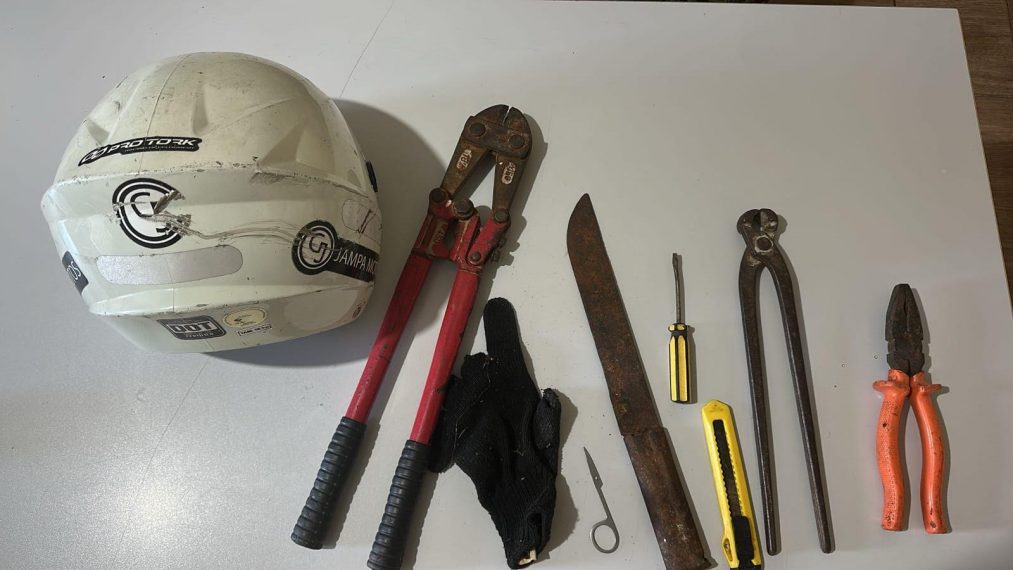 No carro que o grupo usava, um Gol da cor branca, diversos objetos usados para o cometimento dos crimes, como alicates, facas e chave de fenda. Um terceiro suspeito conseguiu fugir mas segue sendo procurado.