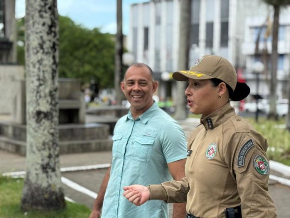 A capacitação foi ministrada pelo tenente-coronel Isângelo Senna, da Polícia Militar do Distrito Federal, doutor e mestre em Psicologia Social. “Quando a cidade cuida dos seus espaços junto com a polícia, os benefícios vão além da segurança: crescem o pertencimento, a convivência, a saúde de quem caminha, a vitalidade do comércio e a qualidade de vida”, destacou o tenente-coronel Senna (na foto abaixo, com a maj. Dayana).