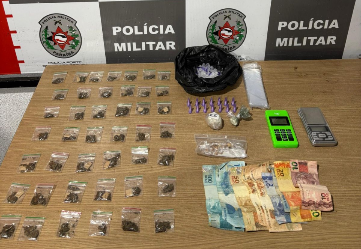 A Polícia Militar apreendeu várias porções de maconha, crack e cocaína, bem como balança de precisão, dinheiro trocado e uma maquineta de cartão, na noite dessa quarta-feira (12), durante patrulhamento tático no bairro do Jardim Veneza, em João Pessoa. O material estava com um suspeito, que foi preso em flagrante quando tentava jogar um estojo com as drogas no telhado de uma casa.