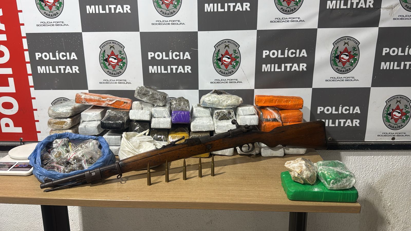 A arma foi abandonada junto com cerca de 30 quilos de drogas, entre maconha, skank, cocaína e crack. A PM reforçou as buscas no local mas não encontrou os acusados.