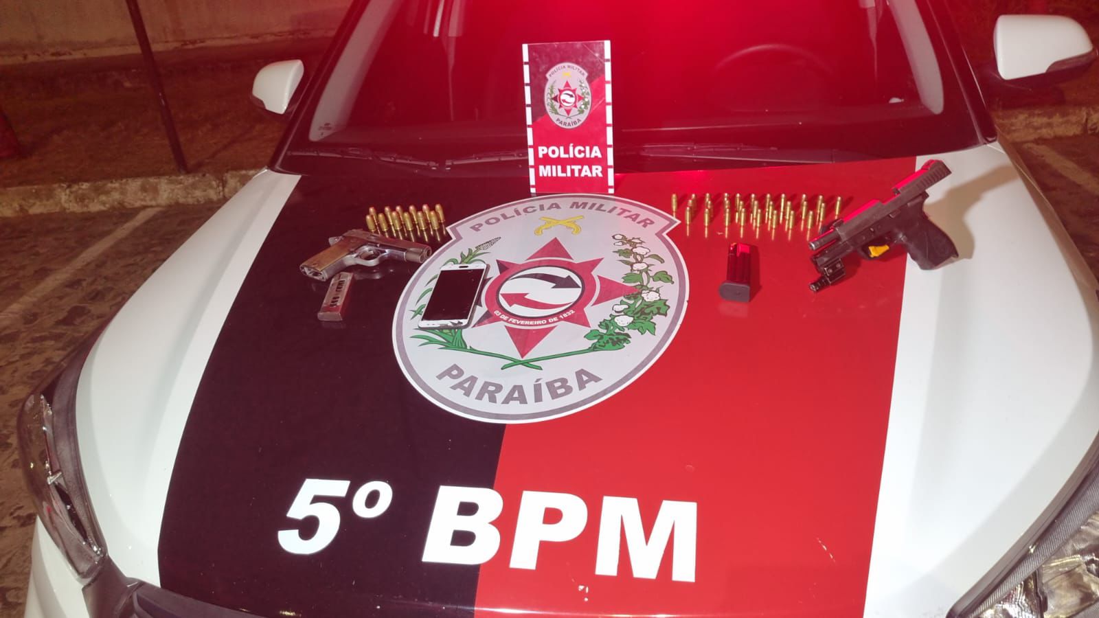 A Polícia Militar frustrou um ataque a tiros que um integrante de uma facção criminosa planejava cometer, nessa quarta-feira (10), no conjunto Gervásio Maia, no bairro de Gramame, em João Pessoa. Com o suspeito, os policiais do 5º Batalhão apreenderam duas pistolas e várias munições. O preso confessou que iria usar as armas contra os membros de um grupo rival. O caso foi levado para a Cidade da Polícia Civil, no Geisel.