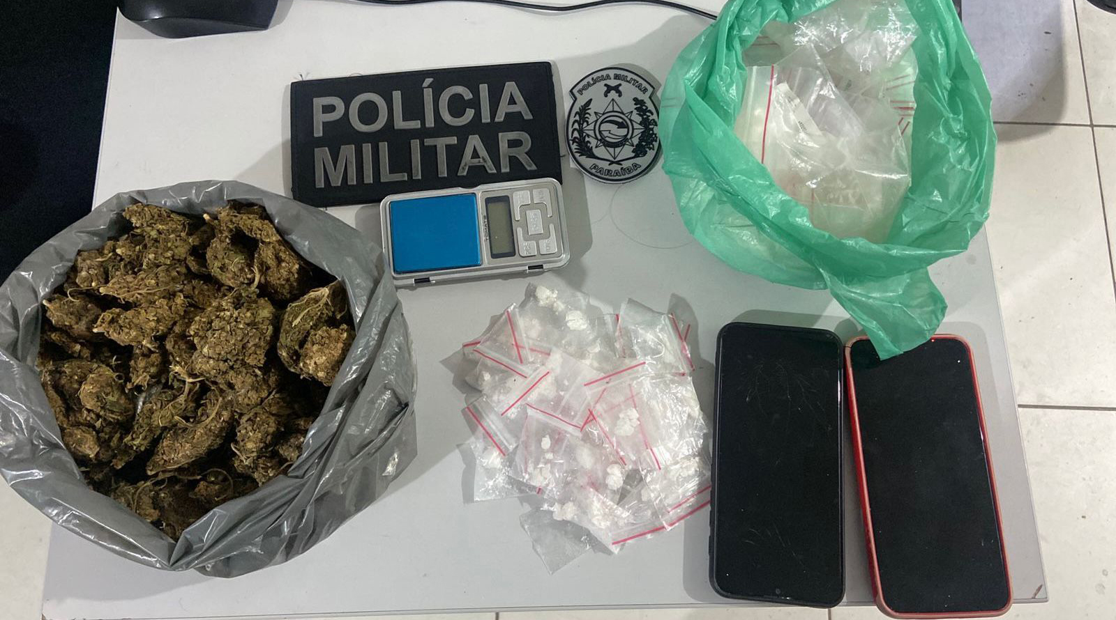 A equipe recebeu a denúncia de um possível ponto de tráfico de drogas em uma localidade, em frente à estação da Cagepa. No local indicado, foi visualizado um indivíduo em atitude suspeita em frente a uma residência. Ao perceber a aproximação policial, o suspeito demonstrou nervosismo e tentou fugir para o interior do imóvel, mas foi alcançado. Na abordagem, foram encontradas 39 porções de cocaína, 400 gramas de maconha, balança de precisão e diversas embalagens plásticas utilizadas para armazenamento da droga.