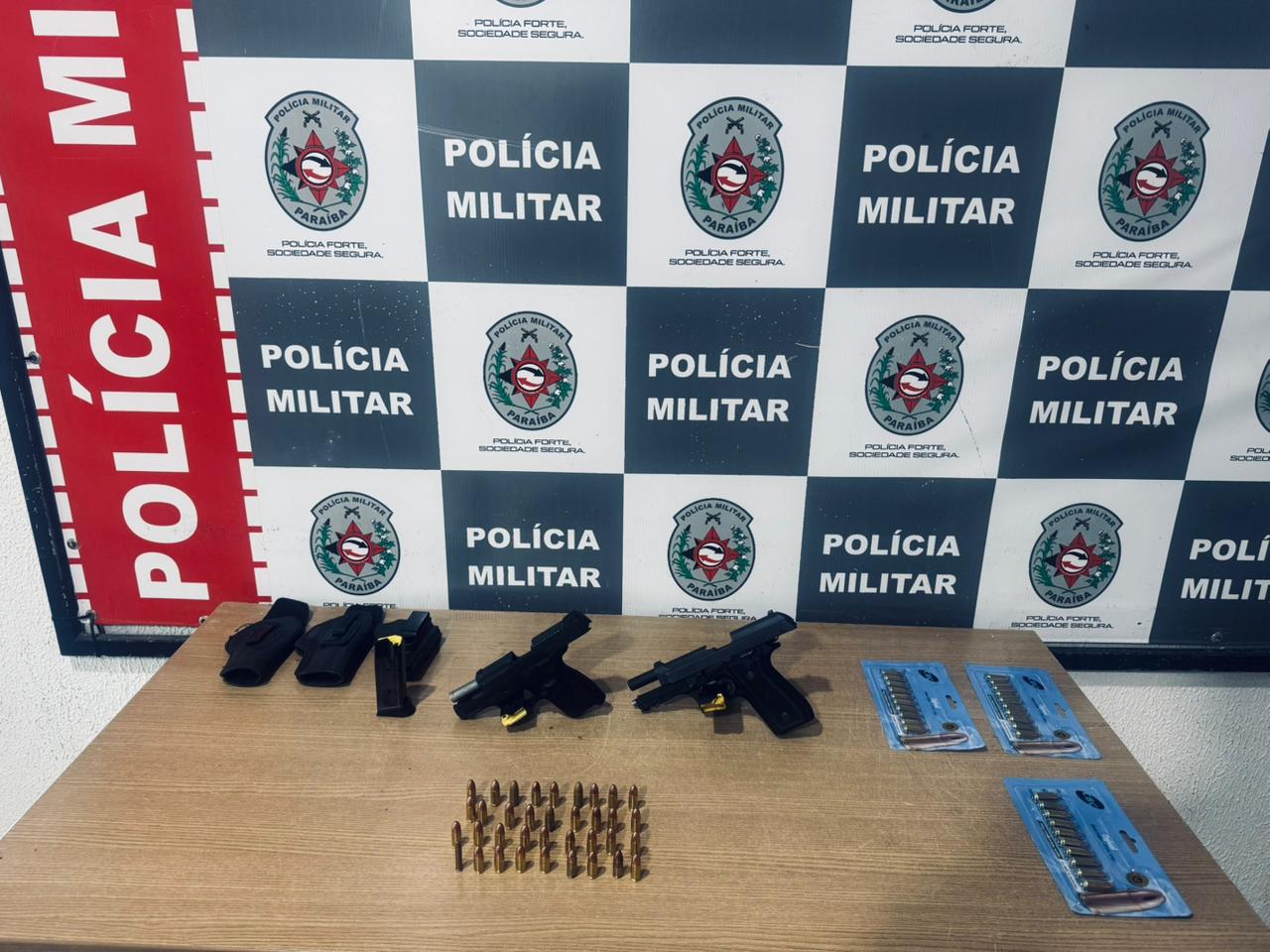 Um veículo com um homem que estava deixando o local de forma rápida foi abordado. Na ação e em diligências posteriores, duas pistolas e mais de 60 munições foram apreendidas.