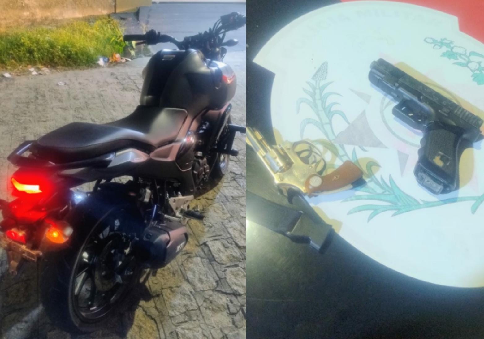 A Polícia Militar frustrou os delitos de dois adolescentes infratores que vinham agindo em bairros da orla da grande João Pessoa. Eles estavam com um revólver com munições, um simulacro de pistola, e com uma motocicleta que havia sido roubada no ano passado. A apreensão dos adolescentes aconteceu na noite do último sábado (10).