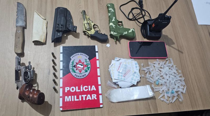 Na tarde deste domingo (18), policiais do 16º Batalhão de Polícia Militar prenderam um homem por porte ilegal de arma, na cidade de Marcação. Os policiais ainda apreenderam simulacros de arma de fogo e material utilizado no tráfico de drogas.