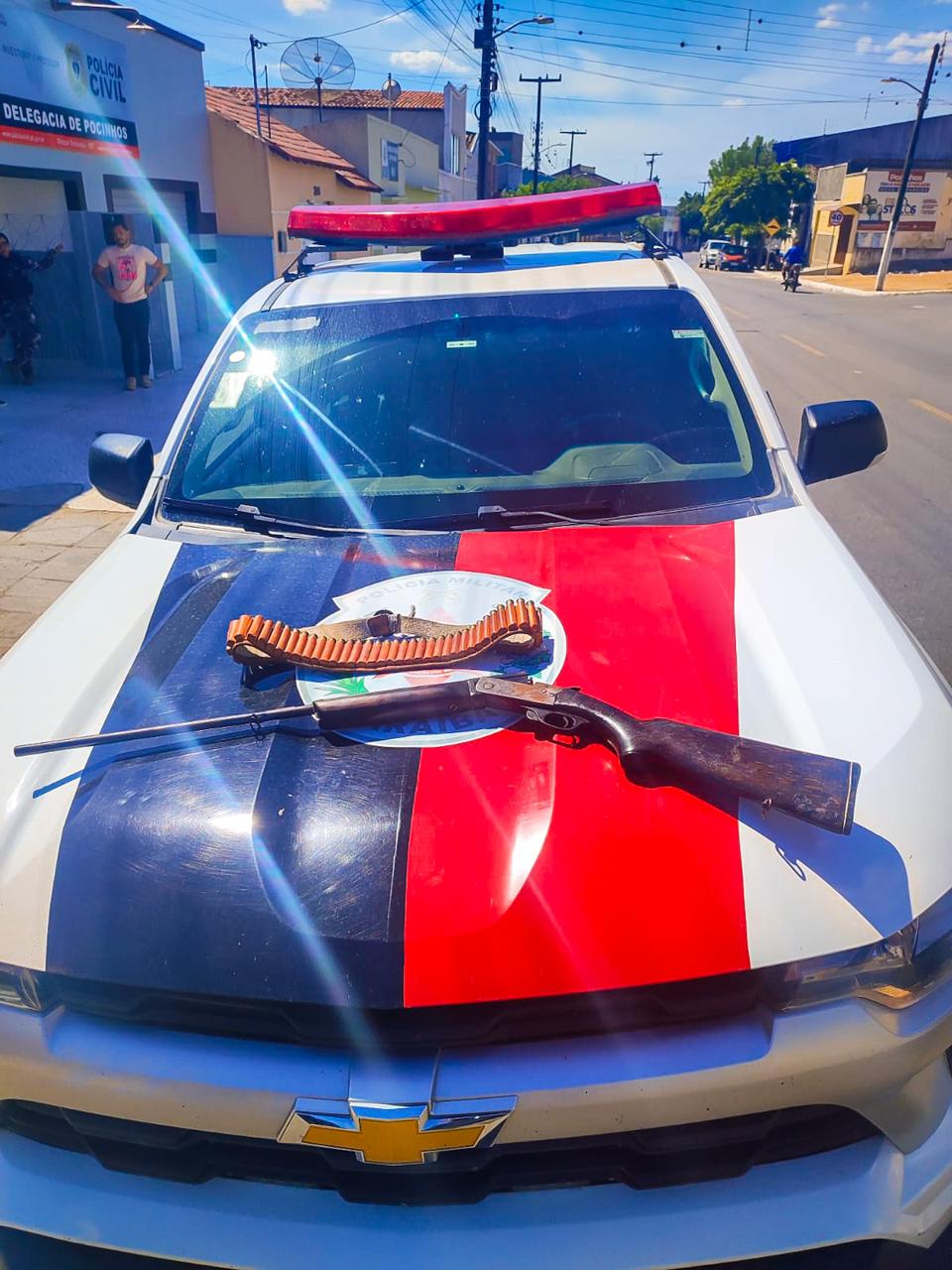 A Polícia Militar apreendeu uma espingarda e mais de 40 cartuchos, nessa sexta-feira (23), após encontrar o esconderijo de um procurado da justiça paraibana, na cidade de Pocinhos. O acusado tinha fugido minutos antes da chegada dos policiais do 15º Batalhão, mas nas diligências foi localizada uma parede falsa onde estava a arma.