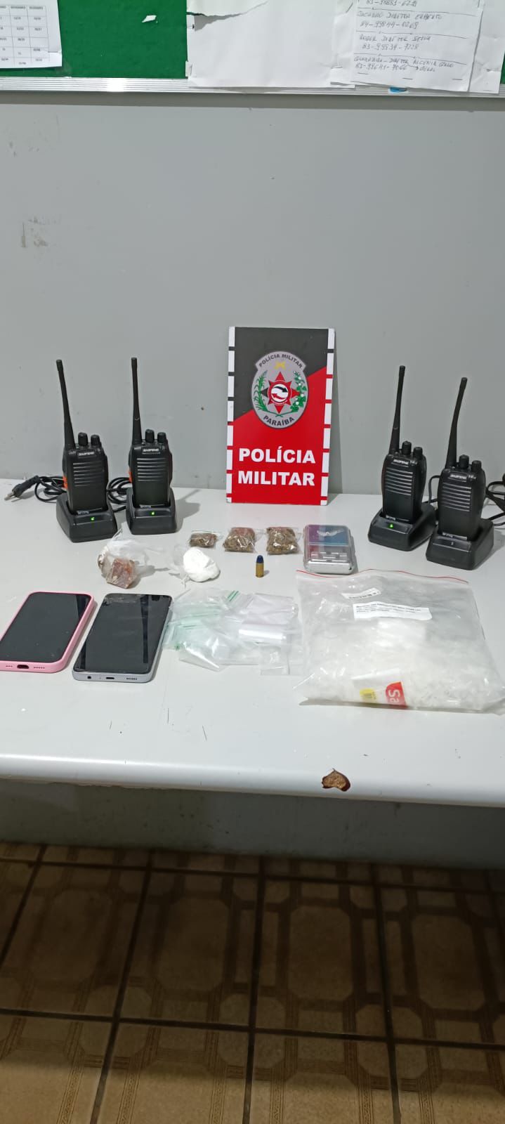 A Polícia Militar apreendeu maconha, crack, cocaína, balança de precisão, embalagens para armazenar drogas, munição de calibre 9 milímetros e rádios comunicadores, na noite desse sábado (24), em uma ação realizada pelos policiais do 17º Batalhão, na comunidade Senzala, que fica na cidade de Rio Tinto, Litoral Norte da Paraíba.