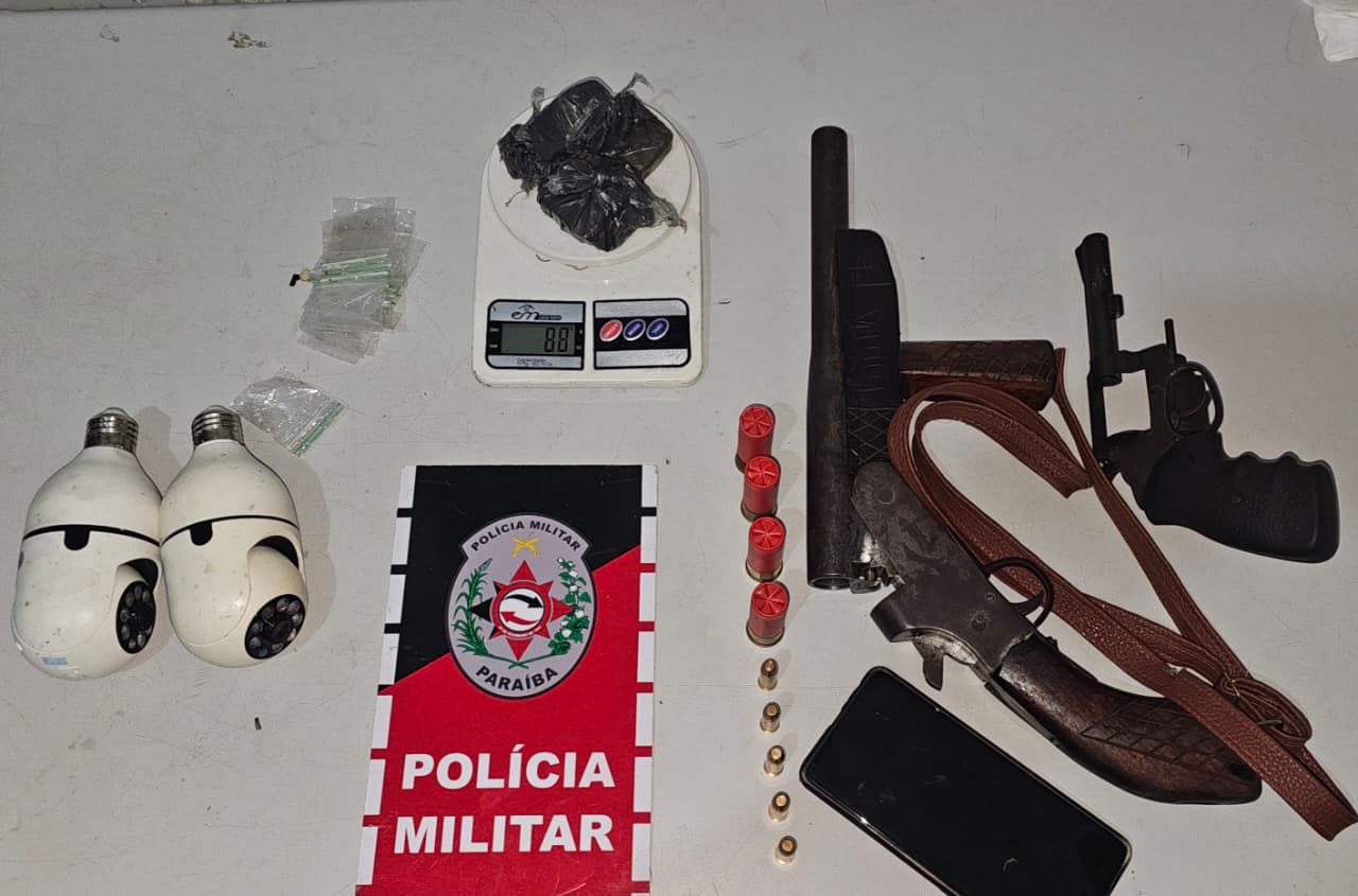 De acordo com o 17º Batalhão, a apreensão do material aconteceu no bairro de Sertãozinho. Um homem foi abordado pela PM e, com ele, os policiais chegaram até um revólver calibre 38, uma espingarda calibre 12, munições, entorpecentes, balança, câmeras de vigilância.