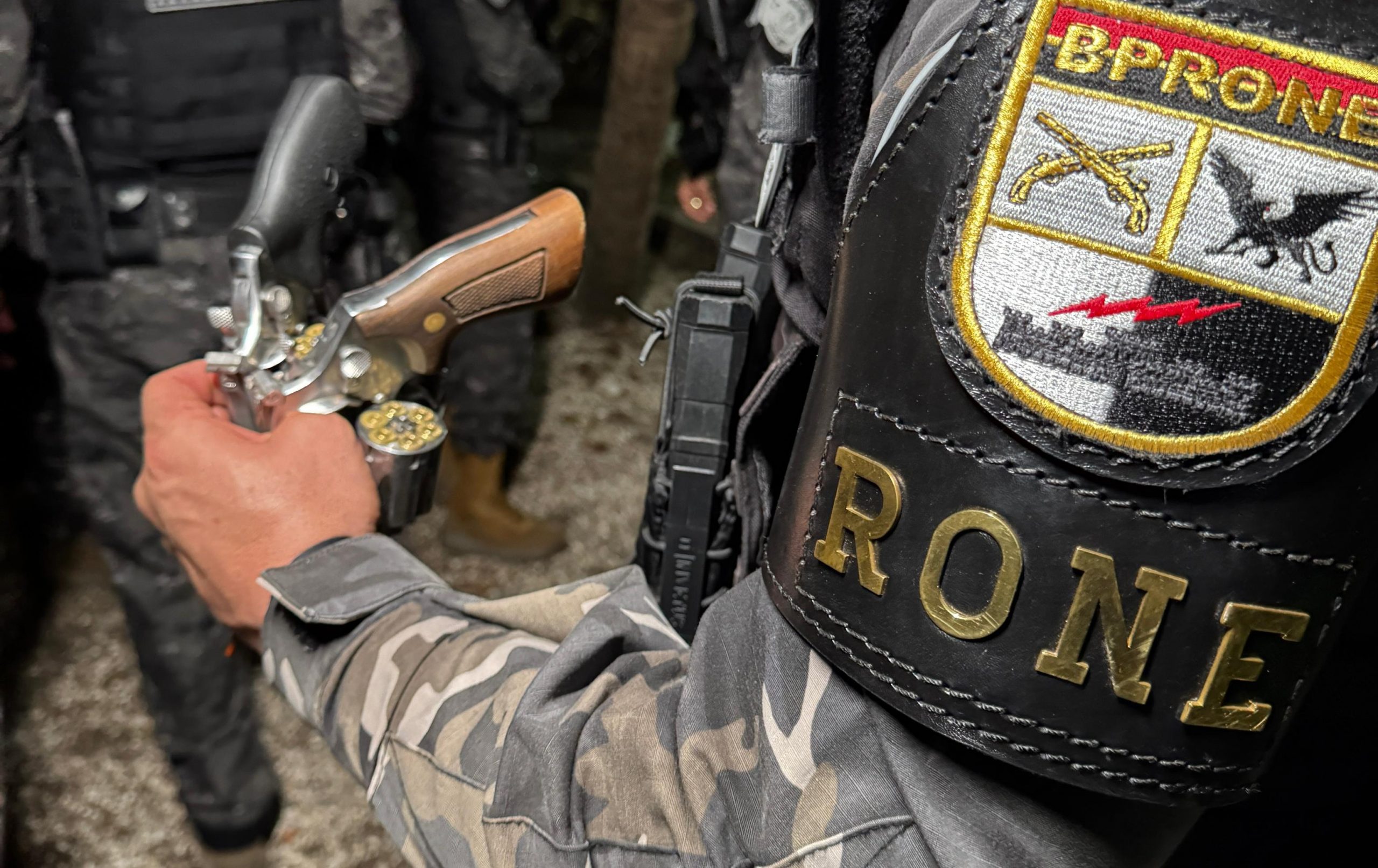 De acordo com a PM, os acusados estavam em uma área de difícil acesso com dois revólveres, e foram flagrados durante reforço policial coordenado pelo próprio comandante-geral da PM, o coronel Sérgio Fonseca.
