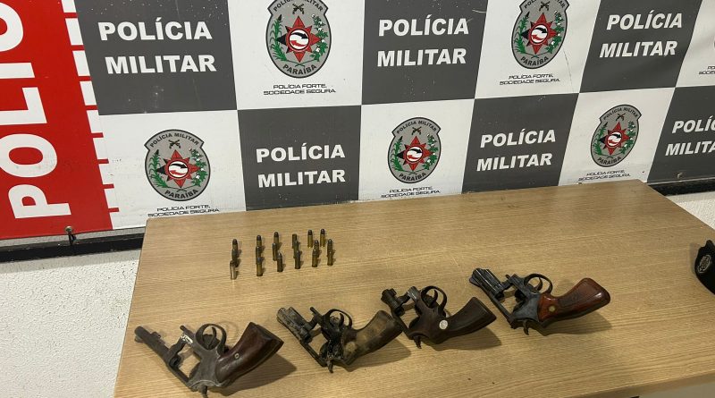 A Polícia Militar apreendeu quatro armas de fogo, munições e cumpriu um mandado de prisão por tráfico de drogas e associação criminosa, nas primeiras horas da manhã desta sexta-feira (13), durante operação no bairro do Alto do Mateus, em João Pessoa. As armas estavam escondidas em uma área de casas abandonadas – os imóveis estariam sendo usados por pessoas ligadas ao tráfico.