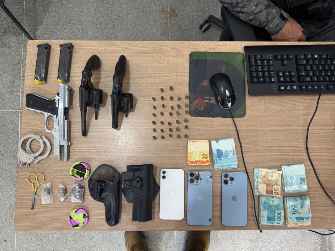 Nas buscas para localizar o aparelho, foi preso um suspeito, apreendidas três armas de fogo e outros dois celulares, no bairro Três Irmãs. O caso foi levado para a Delegacia de Polícia, em Campina Grande.