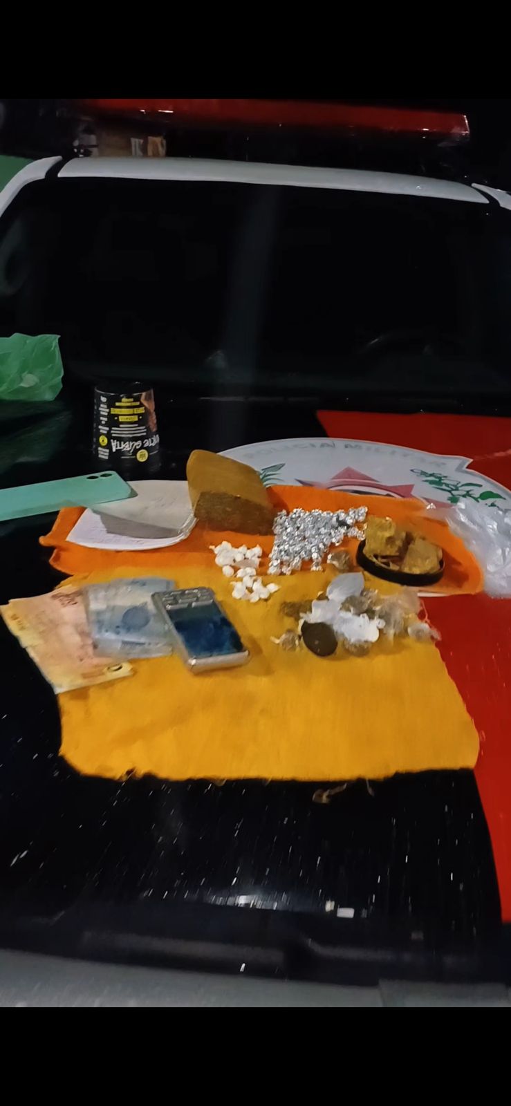 A Polícia Militar prendeu em flagrante, na noite dessa sexta-feira (13), um suspeito que estaria atuando no tráfico de drogas, no Loteamento Nova Cidade, que fica na cidade de Serra Grande. Com ele, foi apreendida uma sacola com crack, maconha, haxixe, cocaína, balança de precisão, embalagens plásticas, caderno com anotações e comprovantes de depósitos bancários. As equipes do 13º Batalhão chegaram até ele após denúncias.