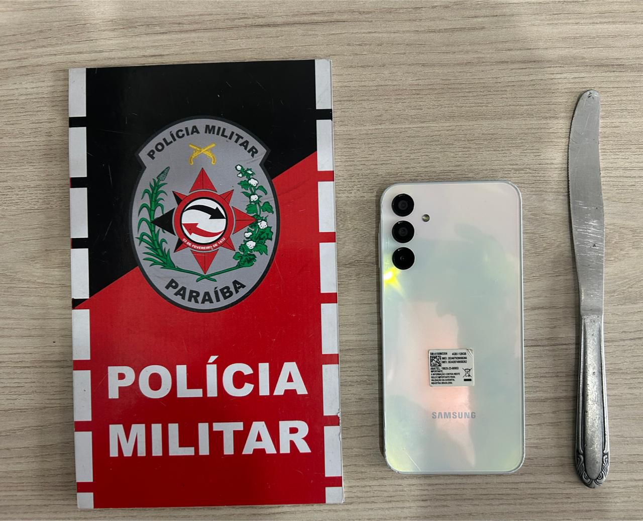 A Polícia Miliar prendeu, nesta terça-feira (14), um suspeito de furtar uma moto e usar o veículo em um assalto, na cidade de Cajazeiras, no Sertão da Paraíba. No roubo, ele usou uma faca para tomar o celular de uma vítima. Com a prisão, que foi realizada pelas equipes do 3º Esquadrão do Regimento de Operações Táticas com Apoio de Motocicletas (ROTAM), foram recuperados o aparelho e a moto.